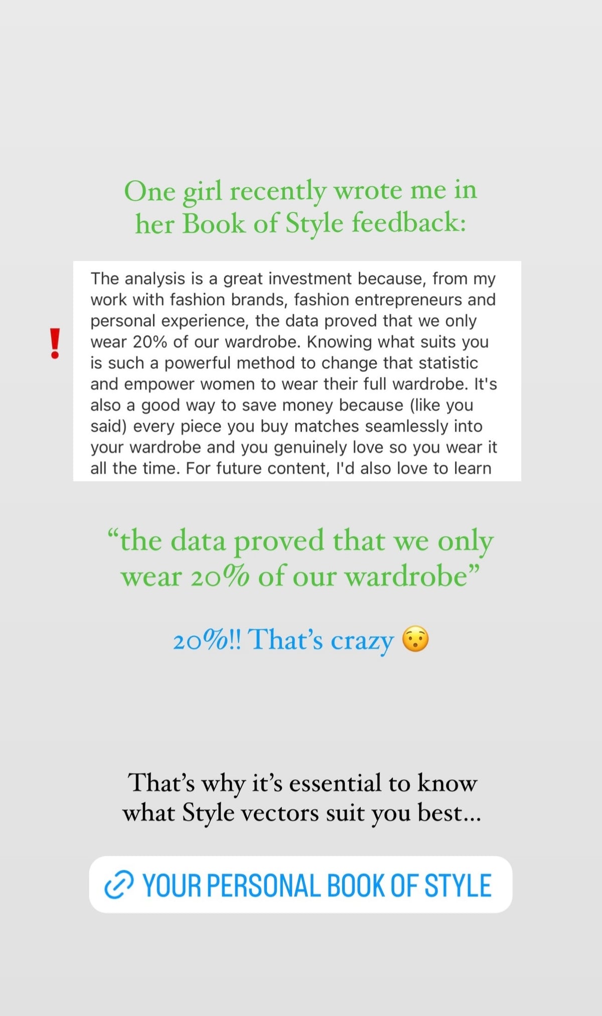 Since your entire wardrobe will be built around your two personal style vectors, every piece will easily mix and match. You’ll forget what it feels like to have "nothing to wear."